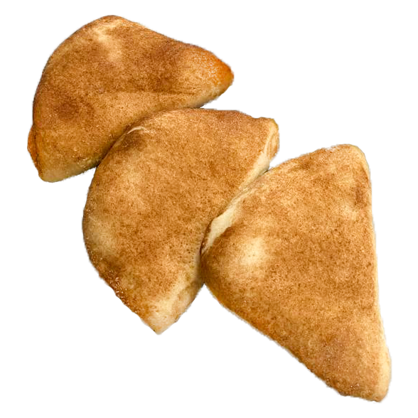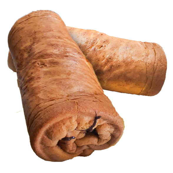 Dulce tradicional, relleno de chocolate o cabello de angel, cubierto de azucar.